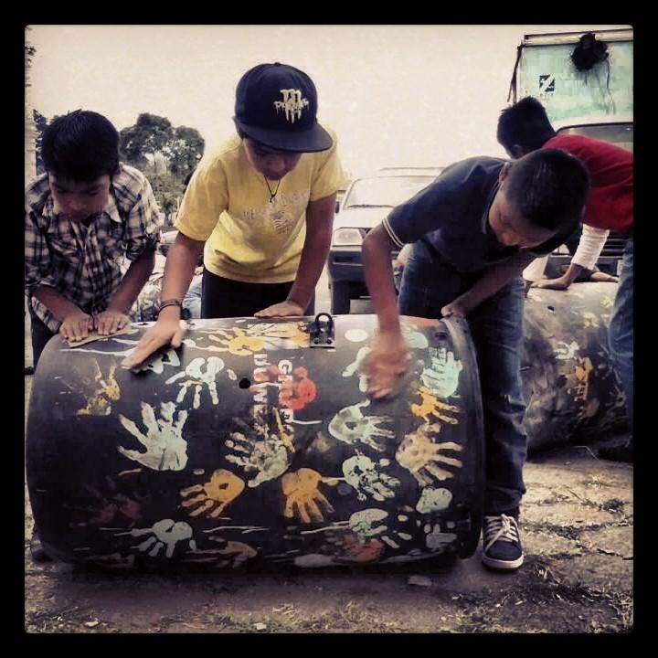 Los artistas de esta obra ambiental, fueron los voluntarios de la Escuela Kikoten, entre maestros y estudiantes con apoyo de los vecinos, alcanzando un total de 36 personas, iniciando desde las 9:30 de la mañana, finalizando a las 2:00 de la tarde, dando como resultado 8 diseños de los basureros peatonales.