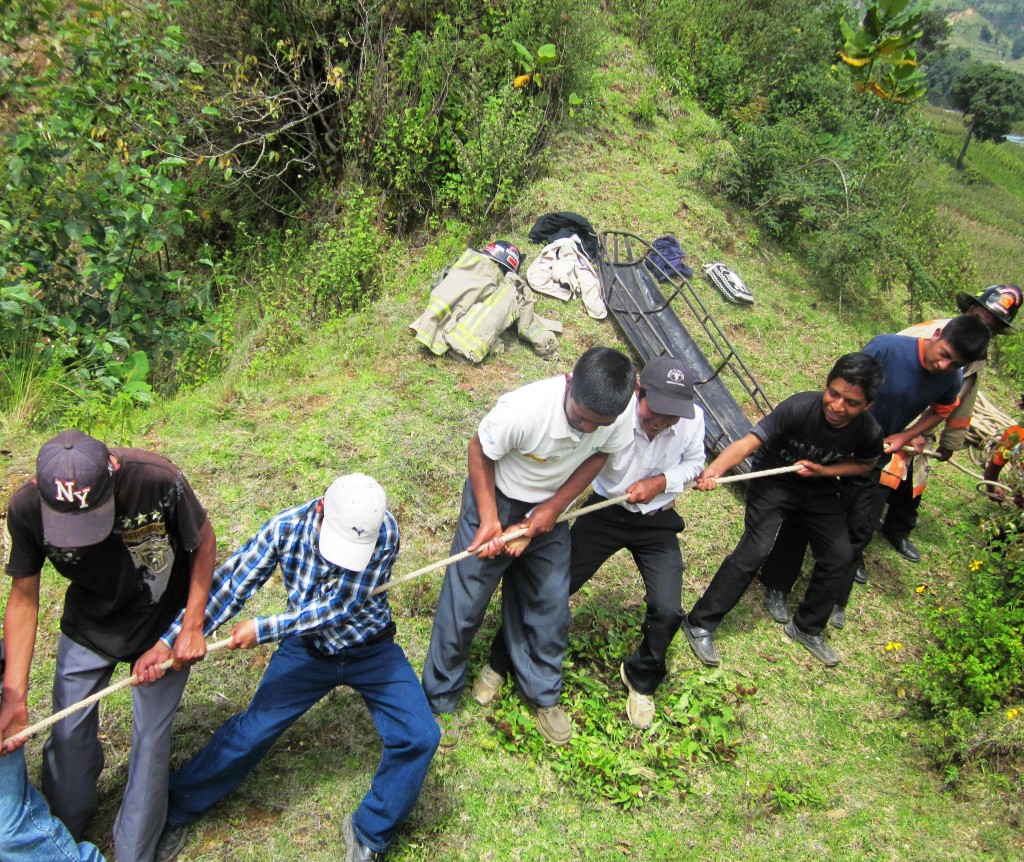 Miembros de los bomberos voluntarios del municipio de Nahualá, Sololá; está preparando a 13  Jóvenes de la aldea Tzamjuyub  Chirij Qal Bal  del municipio y de Santa Catarina Ixtahaucán.